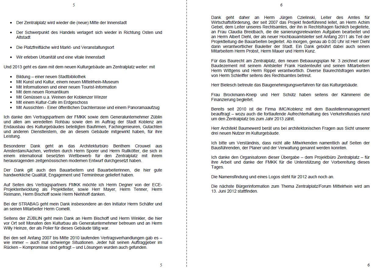 Rede von OB Hofmann-Göttig bei der Übergabe des “veredelten Rohbaus” des Kulturgebäudes/Zentralplatz an die Stadt Koblenz, Koblenz 10.05.2012