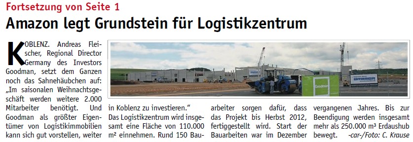 Amazon legt Grundstein für Koblenzer Logistik-Zentrum