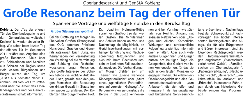 Große Resonanz beim Tag der offenen Tür des Koblenzer OLG und der Generalstaats-anwaltschaft