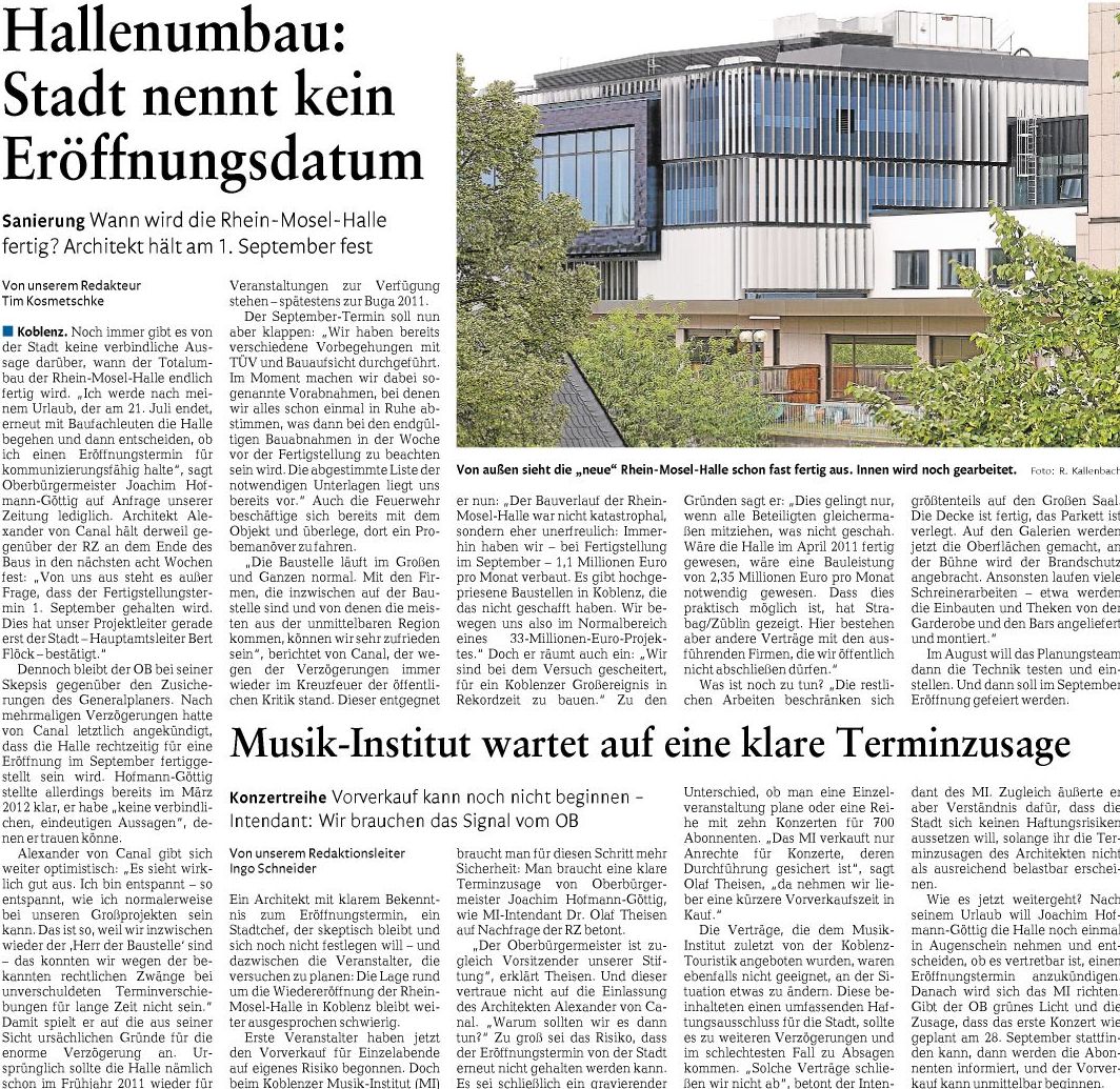 (2) Eröffnung der Koblenzer Rhein-Mosel-Halle noch nicht terminiert