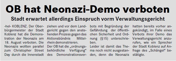 Zum Verbotsantrag der beabsichtigten Koblenzer Neonazi-Demo parallel zum CSD