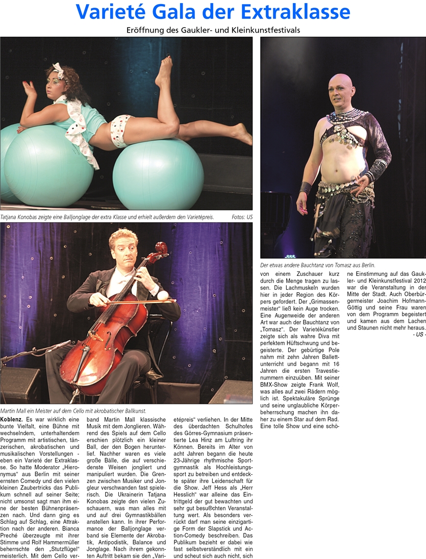 Koblenzer Gauklerfest 2012 mit Varieté der Extraklasse