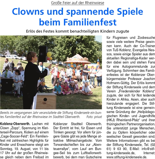 Koblenzer Stiftung Kinderseele veranstaltete großes Familienfest – Schirmherr OB Hofmann-Göttig