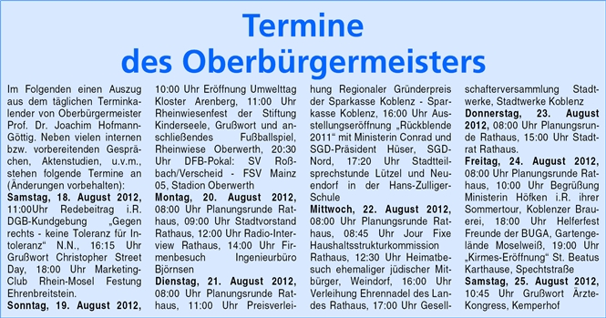 Termine von OB Hofmann-Göttig bis 25.08.2012
