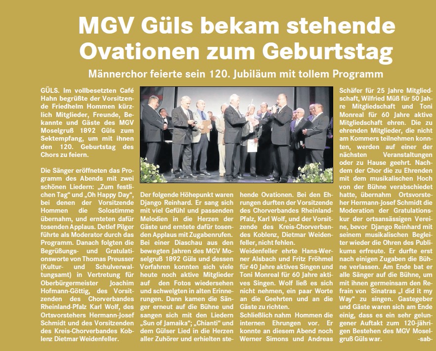 Koblenzer Männerchor Güls (MGV) feierte 120 Jahre