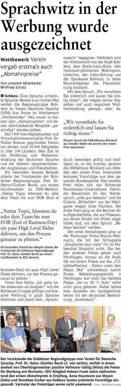 Rhein-Zeitung, Koblenz, 10.09.2012, S. 11