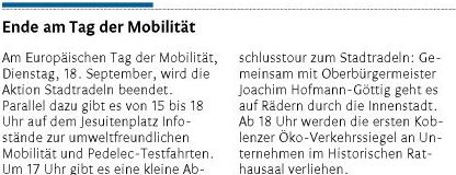 18.09.2012: Koblenzer Stadtradeln endet am Europäischen Tag der Mobilität – gemeinsames Radeln mit OB Hofmann-Göttig