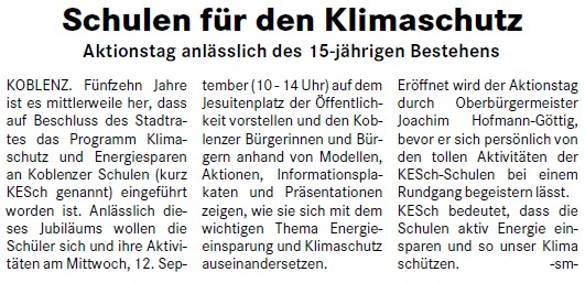 12.09.2012: Aktionstag 15 Jahre Klima-schutz und Energiesparen an Koblenzer Schulen