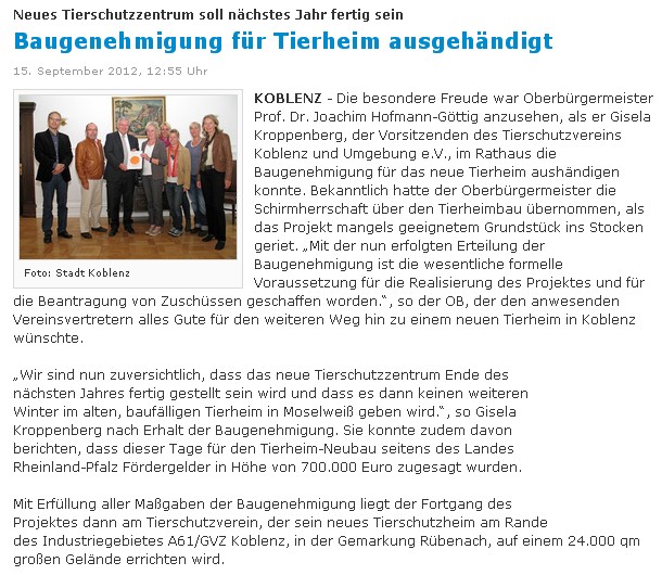 Quelle Link: http://www.medienerleben.de/nachrichten/detail/anzeigen/baugenehmigung-fuer-tierheim-ausgehaendigt-1638/