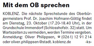 23.10.2012: Stadtteil-Bürgersprechstunde von OB Hofmann-Göttig im Koblenzer Stadtteil Immendorf