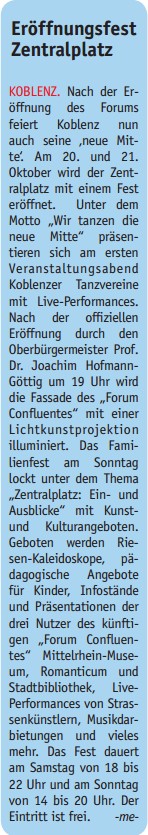 20./21.10.2012: Eröffnungsfest am Koblenzer Zentralplatz