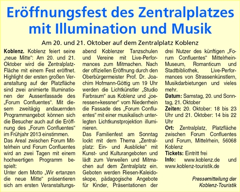 20./21.10.2012: Eröffnungsfest auf Koblenzer Zentralplatz