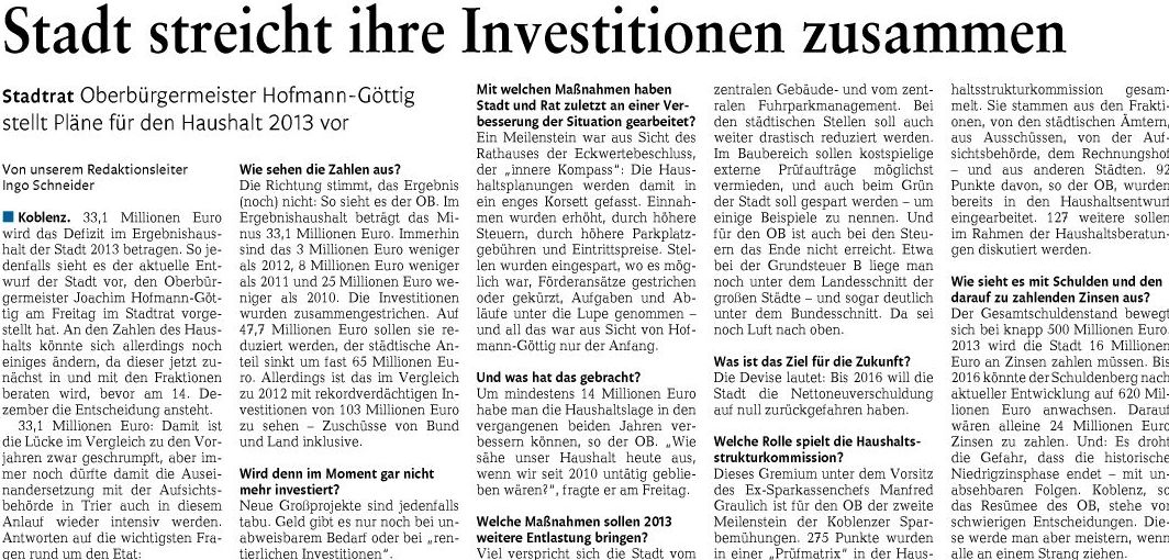 OB Hofmann-Göttig stellte Haushaltspläne 2013 dem Koblenzer Stadtrat vor