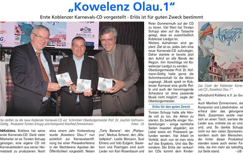 “Kowelenz Olau.1”: Erste Koblenzer Karnevals CD vorgestellt – Erlös für einen guten Zweck