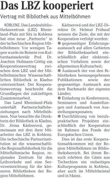Landesbibliothekszentrum kooperiert mit Wissenschaftlicher Bibliothek in Kladno (Tschechien)