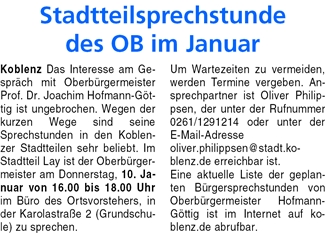10.01.2013: Stadtteil-Bürgersprechstunde von OB Hofmann-Göttig in Koblenz-Lay