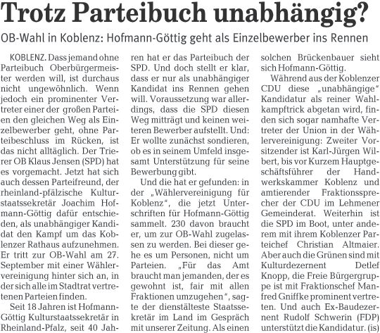 Posted in Medien/Presse zu JoHo, OB-Wahl JoHo 27.9.2009 by joho Keine KommentareRhein-Zeitung 22.04.2009