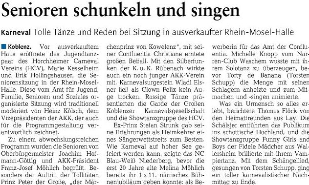Koblenzer Senioren/Seniorinnen-Karne-valssitzung in ausverkaufter Rhein-Mosel-Halle