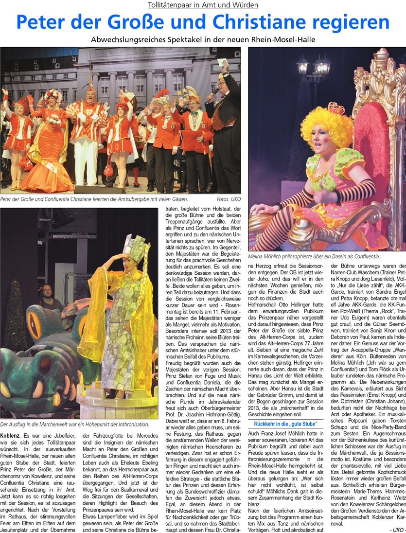 Auszug: Blick aktuell, Koblenz 12.01.2013, S. 4