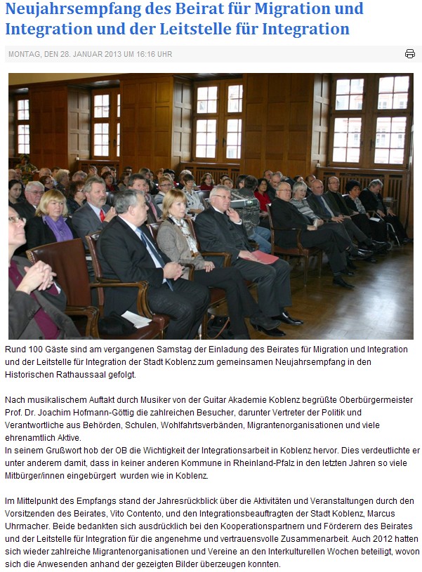 Neujahrsempfang 2013 des Koblenzer Bei-rats für Migration und Integration sowie Leitstelle für Integration