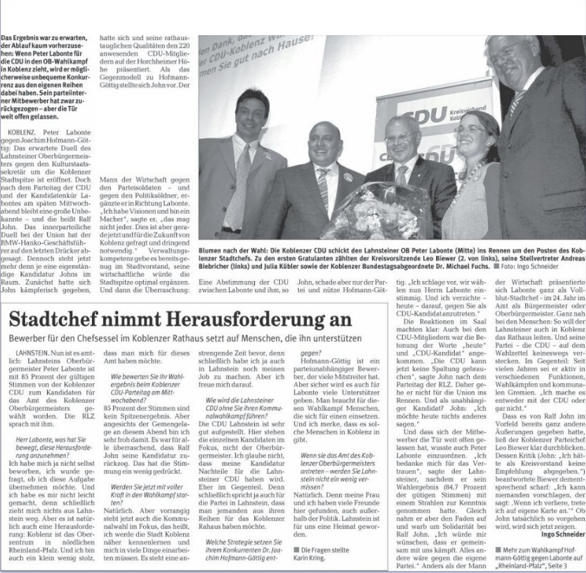 Koblenzer CDU wählt Lahnsteiner OB zu ihrem OB-Kandidaten