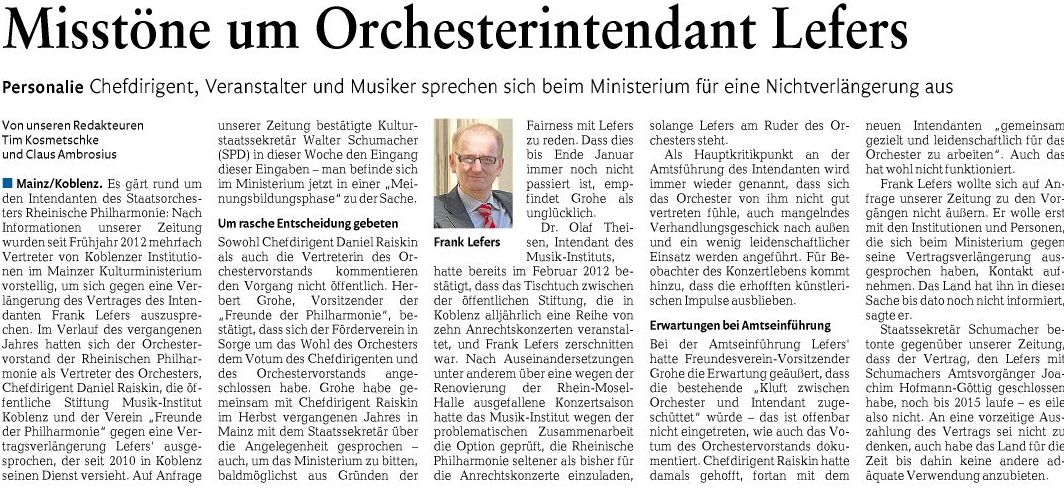 Zum Vertrag mit Koblenzer Orchester-intendanten Lefers