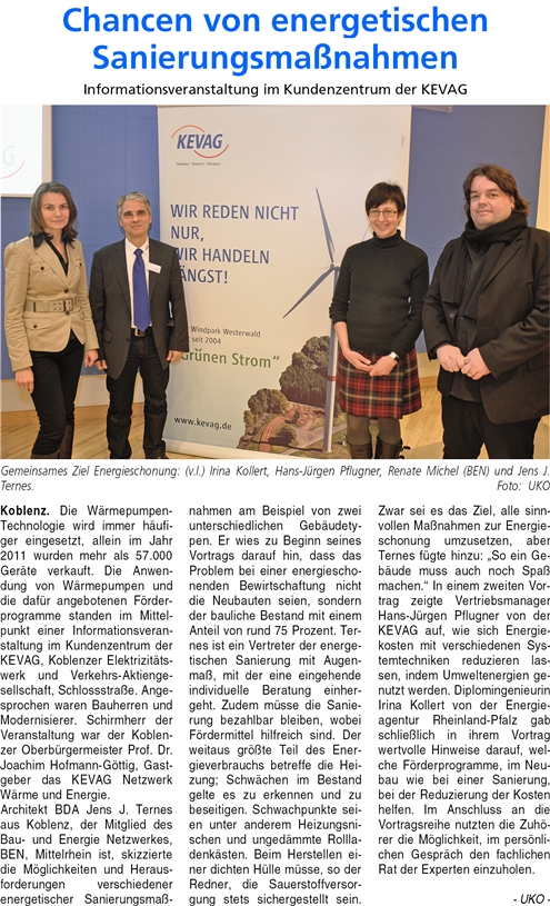 Information im Koblenzer KEVAG-Kunden-zentrum: Chancen für energetische Sanierungsmaßnahmen – Schirmherr OB Hofmann-Göttig