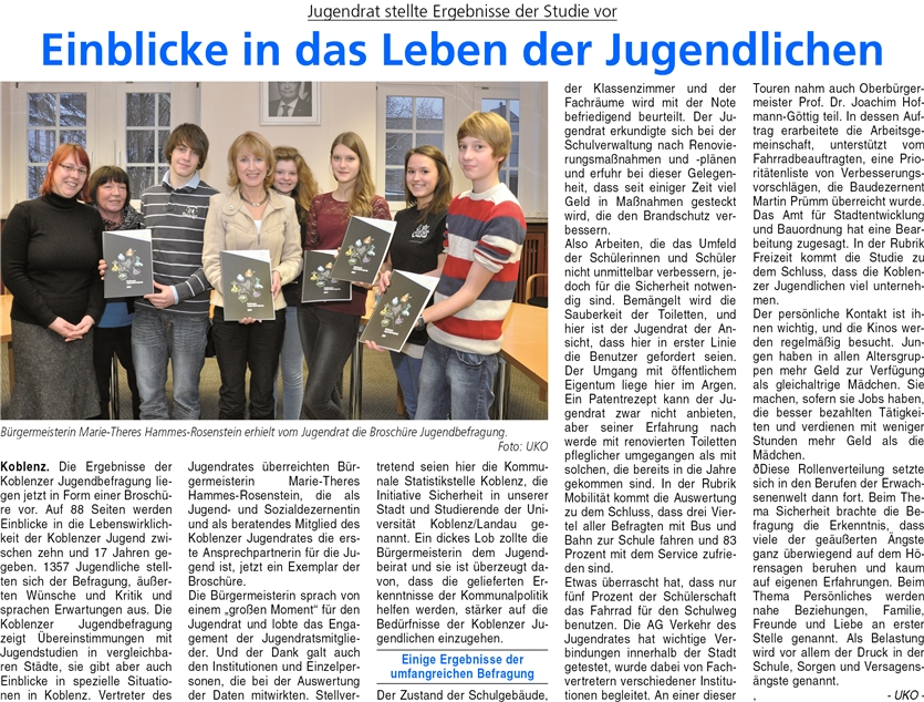 Koblenzer Jugendrat stellte Studie vor: Einblick in das Leben der Jugendlichen