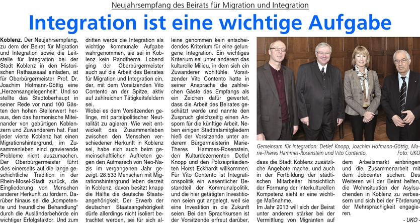 Neujahrsempfang des Koblenzer Beirats für Migration und Integration: Harmonisches Miteinander eine “Herzensangelegenheit”, so OB Hofmann-Göttig