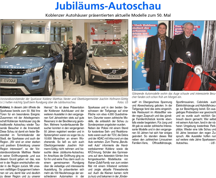Zum 50. Mal präsentierten Koblenzer Autohäuser bei Sparkassen Jubiläums-Autoschau
