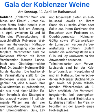 14.04.2013: Gala der Koblenzer Weine im Rathaus – Einladung