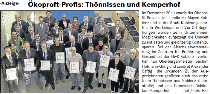 Ökoprofit-Preise von Landrat Saftig und OB Hofmann-Göttig an 10 Unternehmen im Landkreis Mayen-Koblenz und Stadt Koblenz vergeben