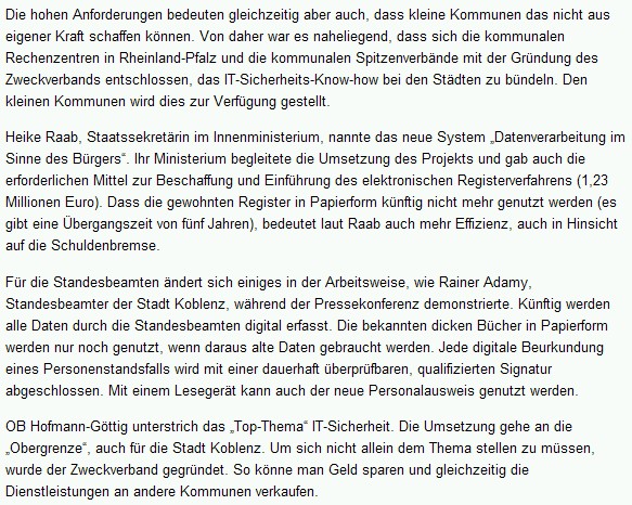 Digitales Standesamt, Datenschutz: IT-Sicherheit und IT-Standard auch für Koblenz