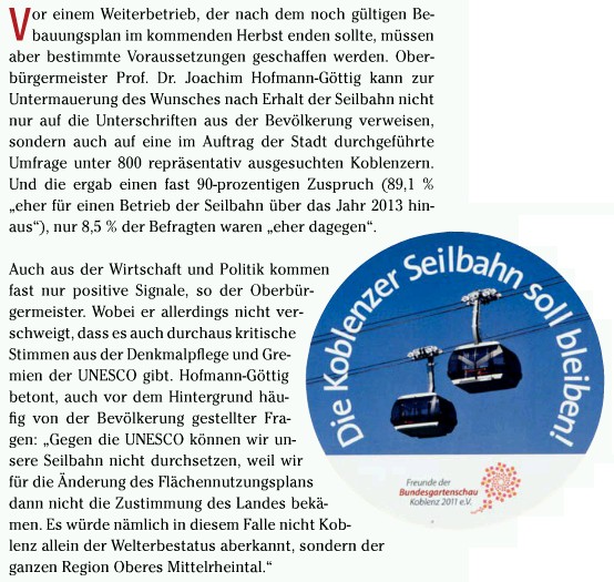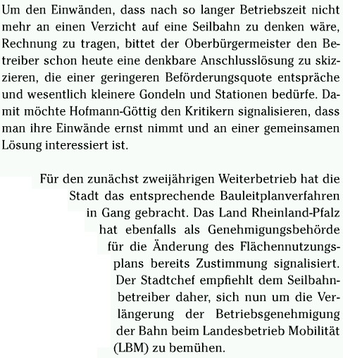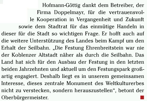 Schritte zum Weiterbetrieb der Koblenzer Seilbahn: Die Festung Ehrenbreitstein war nie näher an der Altstadt als mit Seilbahn, so OB Hofmann-Göttig