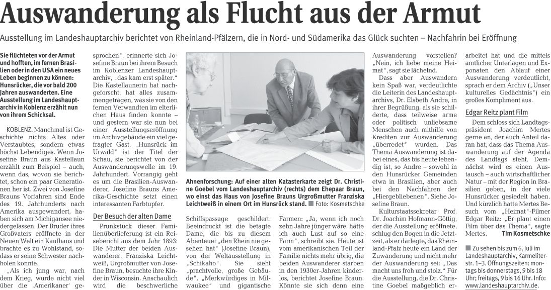 Ausstellungseröffnung im Koblenzer Landeshauptarchiv zu rheinland-pfälzischen Auswanderern