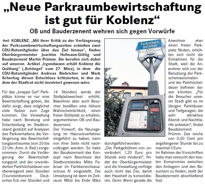 Zur neuen Parkbewirtschaftung in Koblenzer City