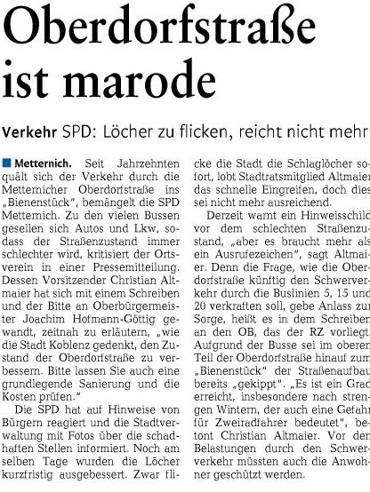 Zum Straßenzustand in Koblenz-Metternich: Oberdorfstraße