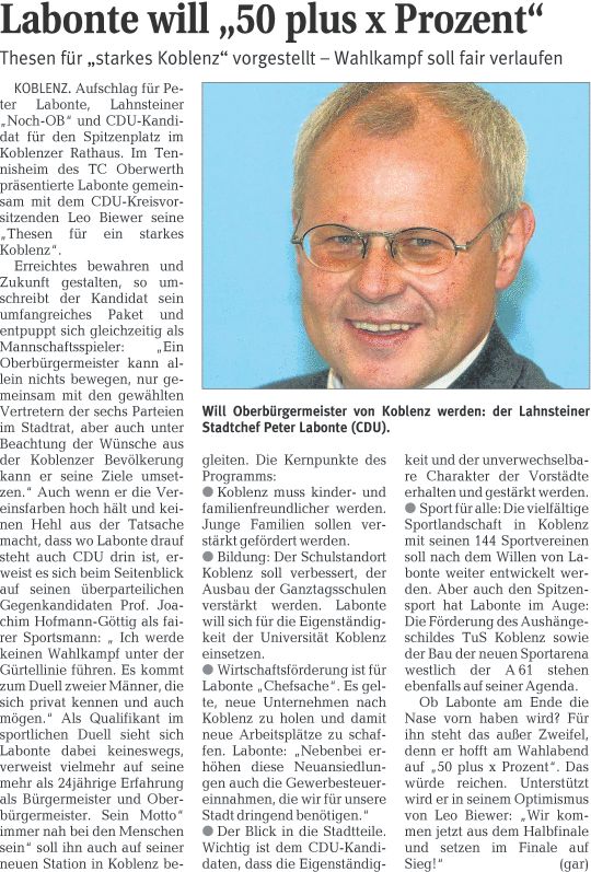 Lahnsteiner OB denkt an Koblenzer OB-Wahlsieg