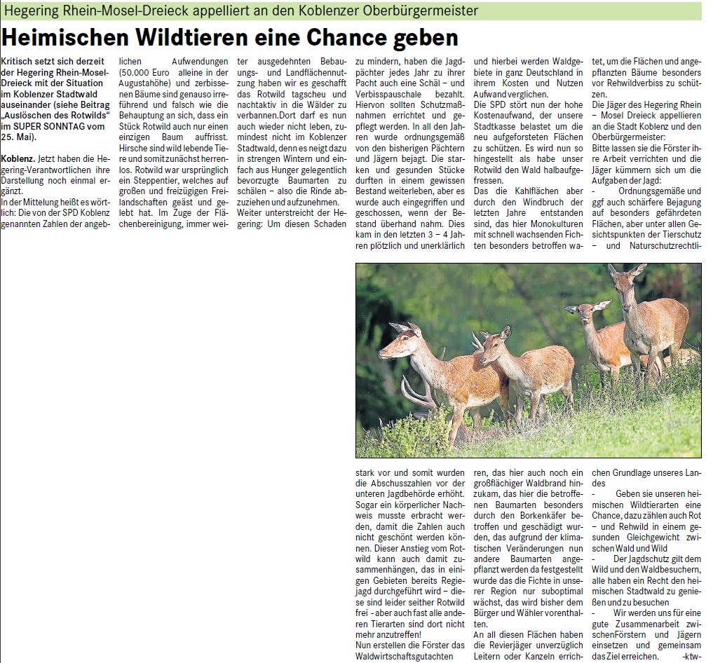 Zur Diskussion um heimische Wildtiere: Appell an Koblenzer OB Hofmann-Göttig