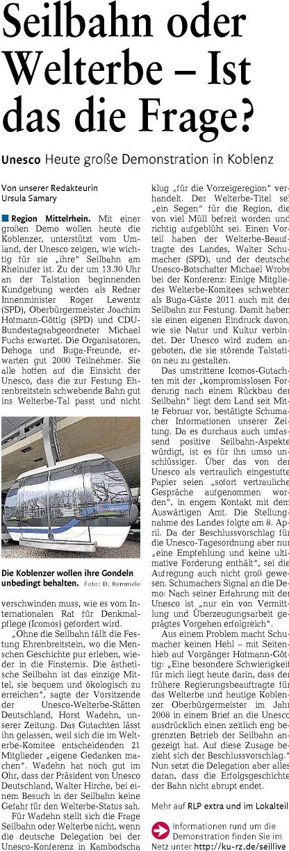 Zur Koblenzer Seilbahn und Weltkulturerbe Oberes Mittelrheintal