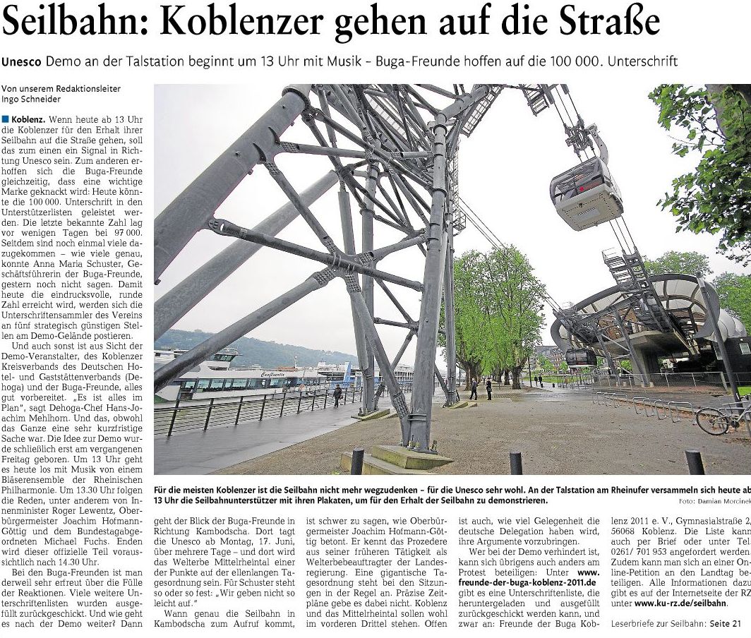 14.06.2013: Demo-Kundgebung zur Betriebs-verlängerung der Koblenzer Seilbahn