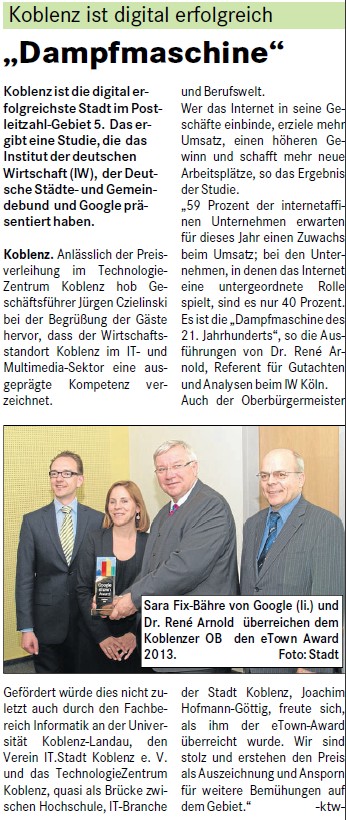 Koblenz “digital” äußerst erfolgreich – Auszeichnung mit “eTown Award”