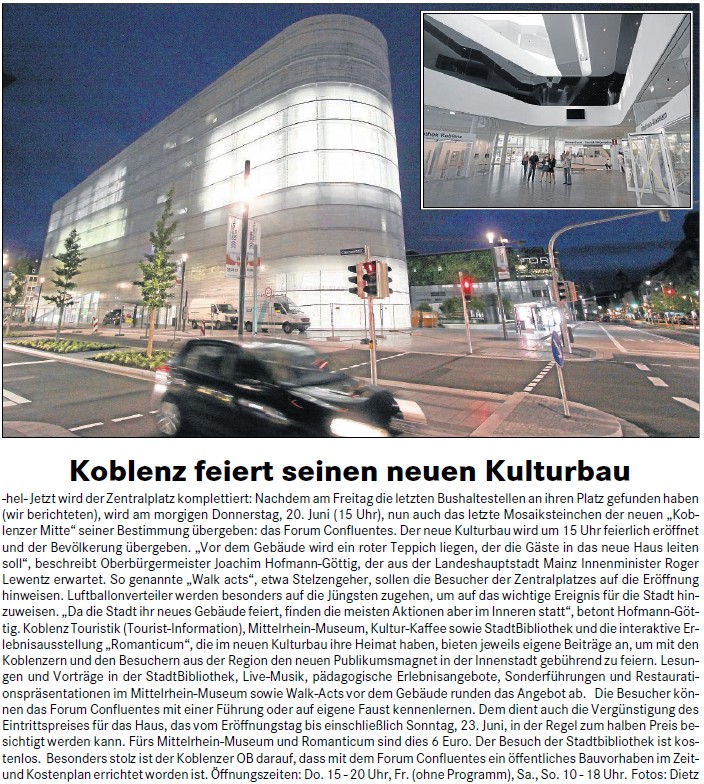 20.06.2013: Koblenzer Kulturbau “Forum Confluentes” wird feierlich eröffnet