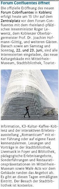 20.06.2013: Offizielle Eröffnung des Koblen-zer Kulturbaus “Forum Confluentes” am Zentralplatz