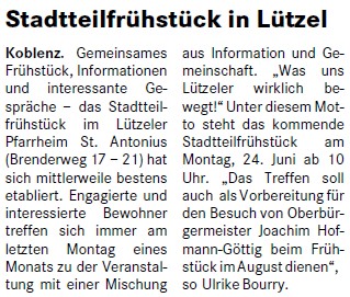 Vorbereitung Stadtteilfrühstück Koblenz-Lützel mit OB Hofmann-Göttig