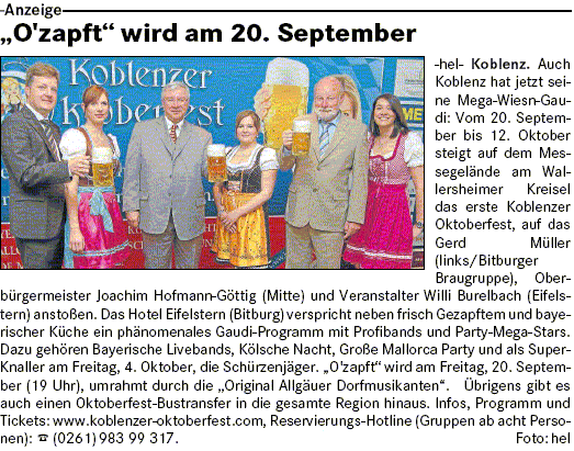 20.09.-12.10.2013: Erstes Koblenzer Oktoberfest mit viel Gaudi-Programm