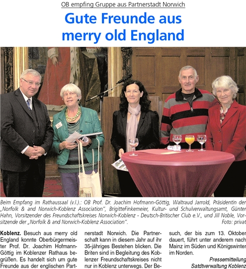 Gäste aus Koblenzer Partnerschaftsstadt Norwich bei OB Hofmann-Göttig zu Besuch