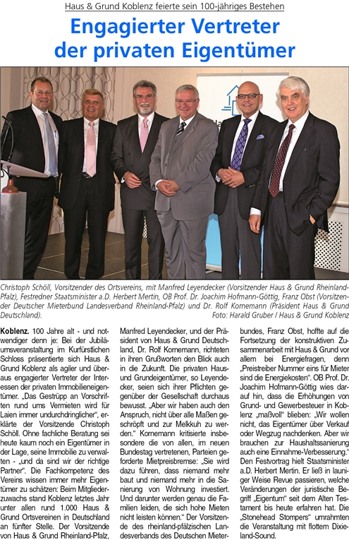 100-jähriges Bestehen vom Koblenzer Verein “Haus und Grund”