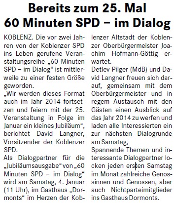 04.01.2014: “60 Minuten SPD – im Dialog” mit OB Hofmann-Göttig