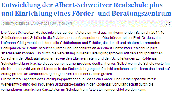 Entwicklung der Koblenzer Albert-Schweitzer Realschule plus sowie Einrich-tung eines Förder- und Beratungszentrums